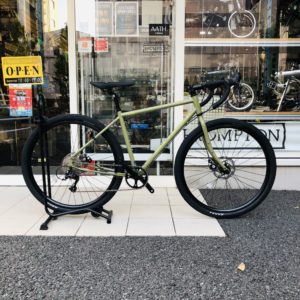 ●ドロップハンドルと変速&ブレーキレバー ●ロードバイクのような操作性 ●650B x 45Cnoの極太タイヤ ●外装9段変速 ●マウンテンバイクのようなタフさを持ち合わせたグラベルロード