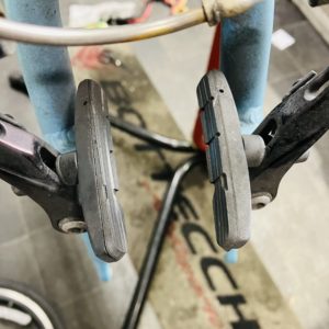 ブレーキシューがかなり擦り減っている状況。