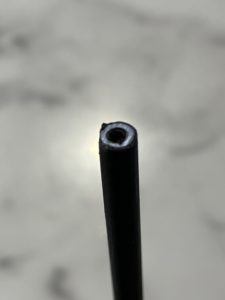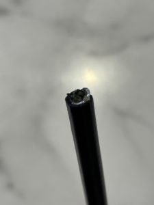 中身をあけるとアウターワイヤーのカットが全くもって丁寧な状態とはいえないものでした。 ワイヤーカットはとても重要になりますが、当店では専用の機械をつかってカットをさせていただいております。