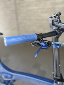 パーツセレクトにもこだわり、ハンドル、レバー、グリップ、ワイヤー、ブレーキ、ローター、サスペンション、シートポスト、シートクランプ、チェーンなどに鮮やかなブルーを取り入れ、スポーティかつ個性的なルックスに。