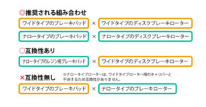 - ワイドタイプのパッドには、ワイドタイプのローターを使う。